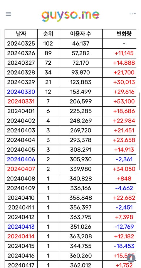 투어스랑 비교해도 추이 ㄱㅊ은 그룹 있는데?