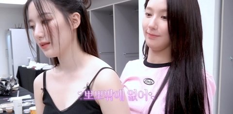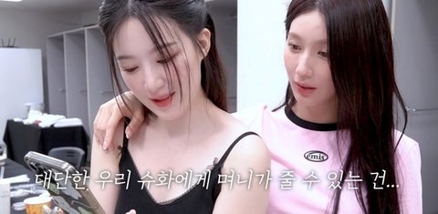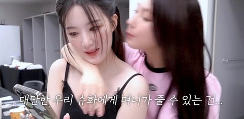 (슈화가 자기 웃긴 영상 잘 찍었다고 미연에게 보여주고 있었음)