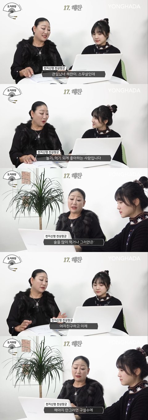 저 사주보는 무당 해찬 차례에만 말아끼는것도 개웃긴데ㅋㅋㅋㅋㅋ 스무살인데 놀기먹기 좋아해서 큰일났다 딱 한마디 함ㅋㅋㅋㅋㅅㅂ 이해찬 미래부인 안전이혼해라