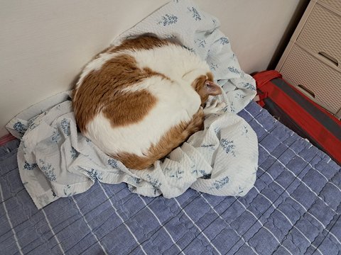 시원한 이불위에서 취침 중..