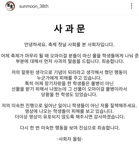 사회자가 그학교 학생인건지, 전문 사회자인데 저난리 난건지도 궁금하네요ㅋㅋ 일당받는 외부 사회자면 대학이 억울할듯ㅎ;