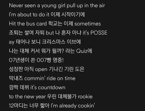 겉핥기 아니고 찐 힙합 장르(수록곡까지 싹 다) + 멤버들 작사, 곡 작업 참여 비중 높음