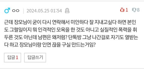 그런데 남편은 기분이 나쁘다고 사과할 생각이 없대요. 일단 자기가 뭘 잘못했는지도 모르겠고, 연 끊을 것처럼 단톡방 나가버리더니 이제와서 뭐하는 짓이냐고 기분이 불쾌하다네요..