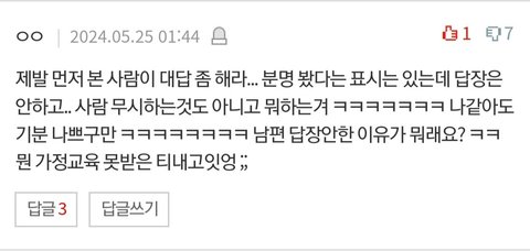 그래서 언니네 가정은 형부가, 저희는 제가 답변해야 되는 일이 많았어요. 그런데 제가 답변하면 남편이 "확인했습니다" 정도는 보내줘야 하는데 답변을 잘 안하더라고요.