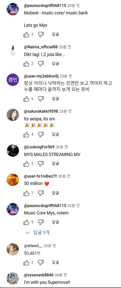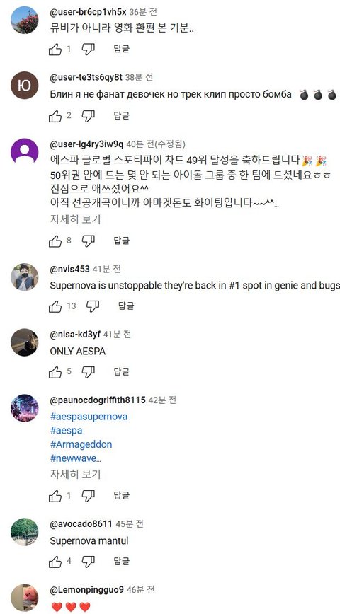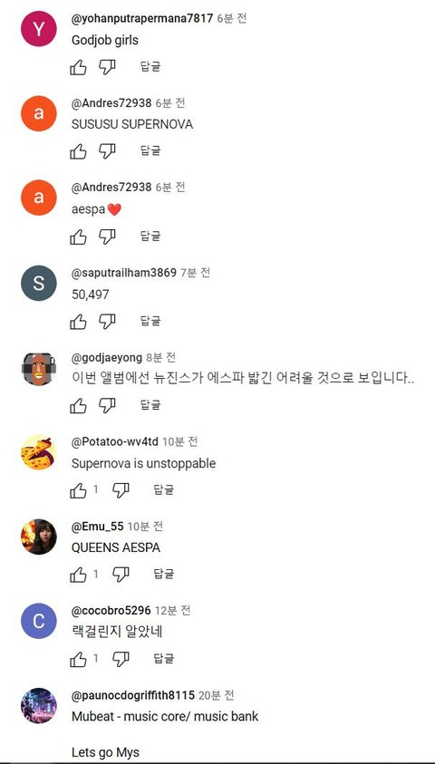 우선 보기전에 요즘 비슷한 시기에 나온 에스파의 댓글 반응과 비교 하겠습니다.