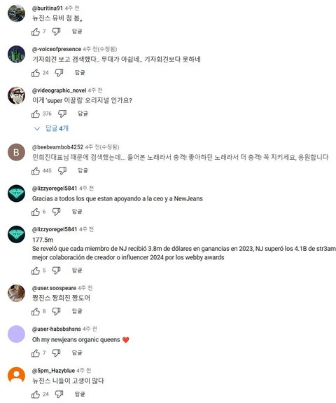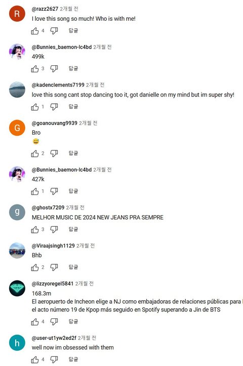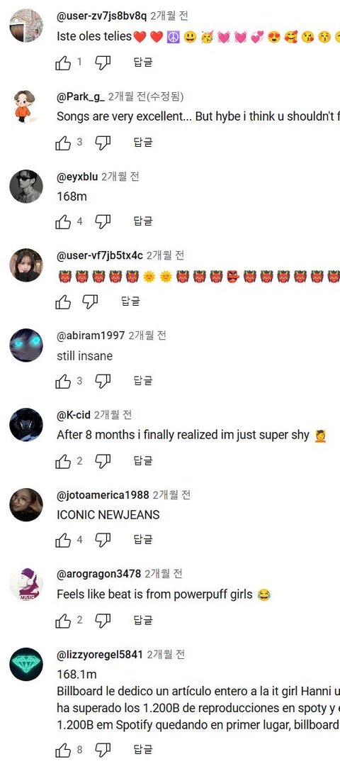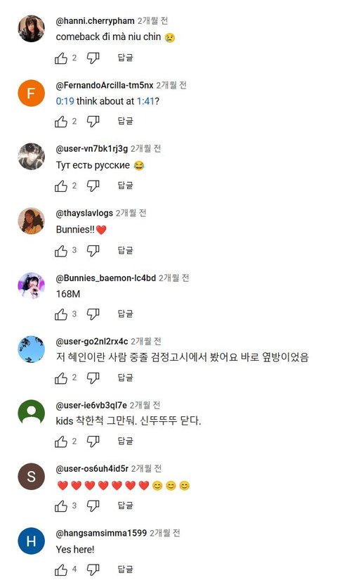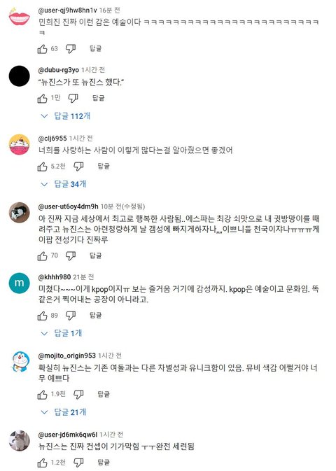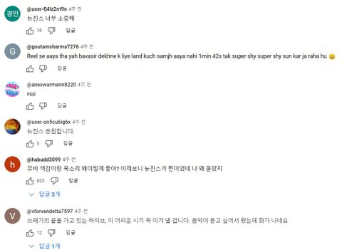 이상하게 뉴진스 실시간 댓글엔 한국어가 많네요 뉴진스 외국에 인기가 없나??