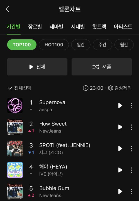 슈퍼샤이 때도 첫 날에 4등? 하고 금요일 1시 발매한 거 치고 잘됐다 박수 받았는데 지금 2등임!ㅎㅎ 버블껌도 5등