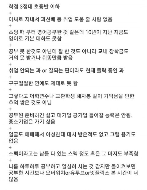 타인과 비교하는 내용 뿐이네 저런걸 무슨 대단한 내용이라고 줄줄이 나열해놓는거지