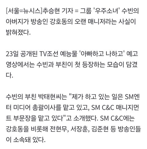 우주소녀 수빈 아빠 SM 총괄이사래
