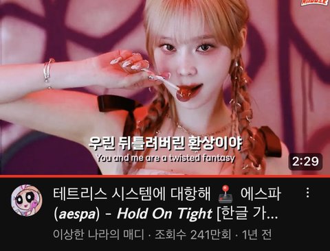 테트리스 샘플링해서 만든 노래인데 수퍼노바도 좋지만 나는 이게 에스파 노래 중에서 제일 좋다고 생각함 근데 생각보다 이 노래 안 유명하더라 이 노래 나올 시기가 에스파 하락세 끝날 때쯤 나온 노래여서 그런가 ㅠㅠ