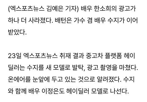 헤이딜러 남사장이 한소희 팬이라서 광고 찍을때 촬영도 영화같은분위기로 공들여서 찍었다던데 3월 이후로 헤이딜러 sns에 악플 몰려와서 댓글창도 닫고 버틸수가없었나바