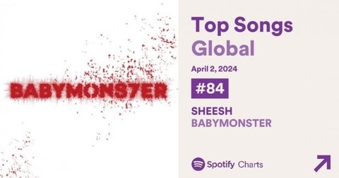 베이비몬스터 데뷔곡 쉬시 첫날 성적 84위