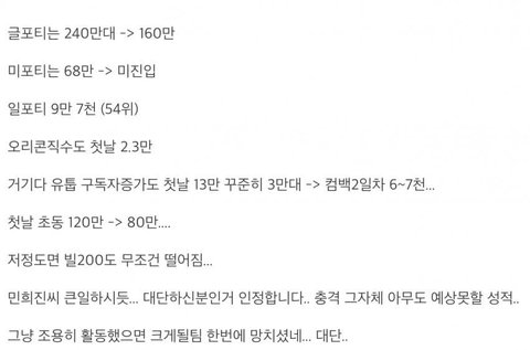 근데 진짜 민희진 편 들어주는 민심들 뉴진스한텐 돈 한푼도 안 쓰긴 하나봄..ㅋㅋㅋ