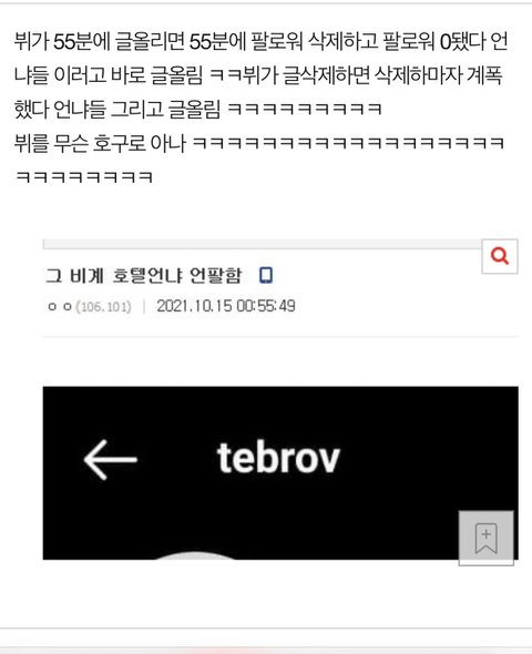 - 방갤발로 비계 조작하기시작 뷔 비계라며 실시간 루머 만들어 온커뮤 빌드업