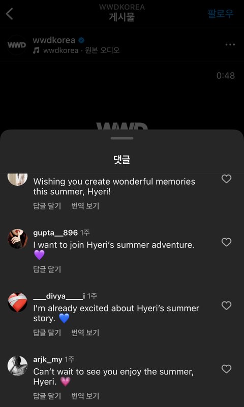 같은 잡지사에 달린 혜리 댓글 (가계정)
