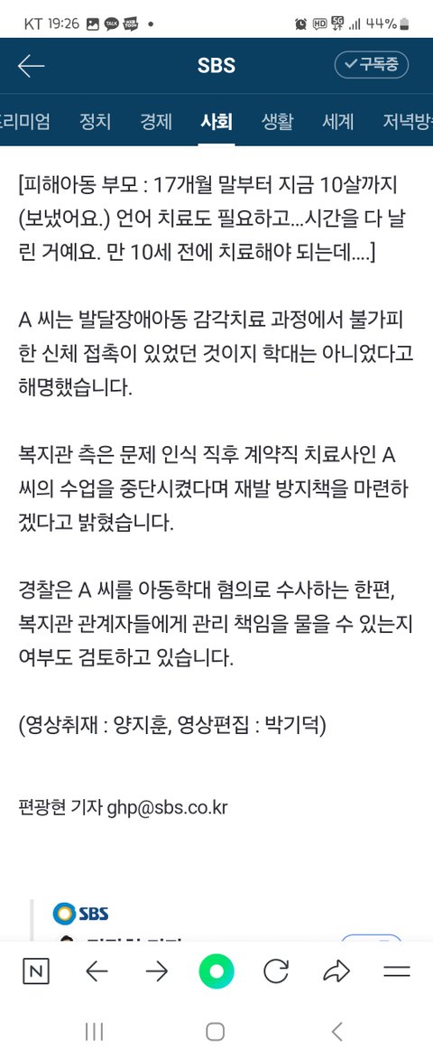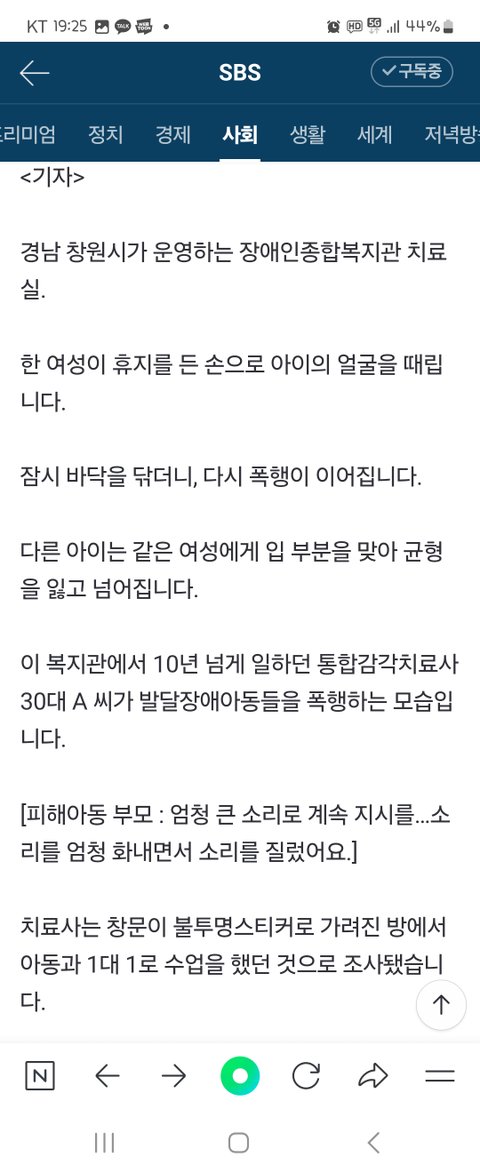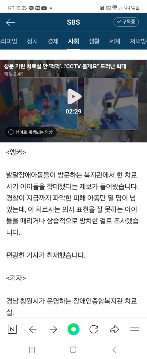 안녕하세요. 최근 경상남도 창원시장애인종합 복지관 감각통합 치료실에서 일어난 아동학대 사건 기억 하시나요?