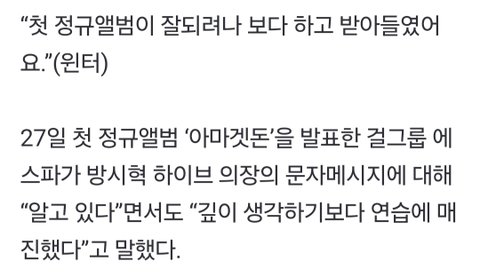 에스파 윈터, 방시혁 의장 카톡 질문에 '웃참'