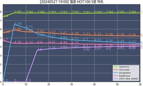 5분차트 그래프권 천상계 8점대가까이서 아예 누워버리다가 아래로 껵어야할 그래프가 다시오름 (원래는 아래로 꺽이는게 정상 그래프)