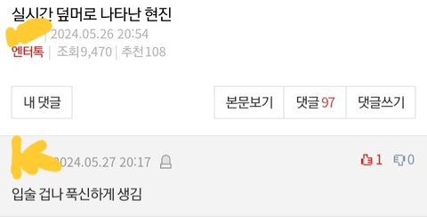 지금 현진이 톡선글에