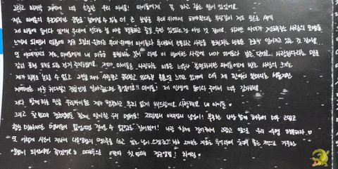 또 이때까지의 저는 마이들에게 내 마음을 표현하는 것이 과연 이 방대한 사랑에 내가 마이들과 같은 단어로 사랑한다라는 말로 감히 표현해도 되는 건지 주저했어요. 제가 마이들을 사랑하는 마음은 너무나 분명하지만 마이들에게 받는 사랑의 크기는 제가 함부로 논할수 없고 그만큼 제가 사랑받고 응원받고 있다는걸 온몸으로 느끼고 있기에 더욱 제 한마디 한마디는 서툴지만 저에게는 아주 커다랗고 진심인걸 알아줬으면 좋겠어요!! 마이들! 제 인생에 들어와주어서 너무 감사해요.
