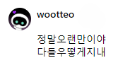 일곱글자오랜만 무사히갔다왔니 보고싶었어우떠