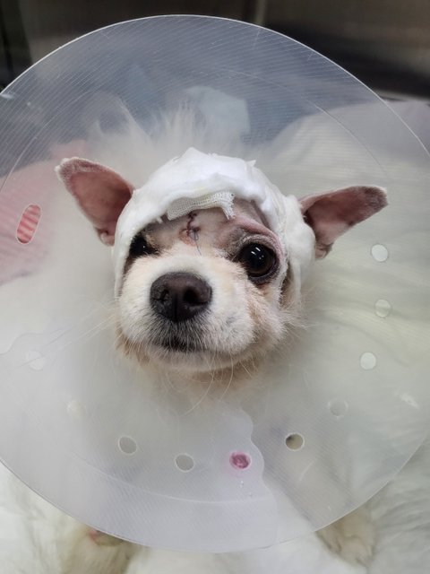 보호소에 있다가 입양 되어 돌봄을 받을 줄 알았던 저 작은 아이는 다시 버려지다시피 작은 몸으로 밖에 묶여 있다가 누구하나 대항해주는 사람 없이 너무 아프고 충격적인 폭력을 당했고, 뇌수술을 마친 상태입니다.
