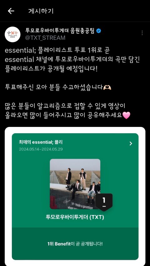 잘해따ㅠㅠㅠ에센셜 투바투 플리여 오라