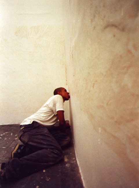 갤러리 벽을 혀로 핥다가 피를 본 예술가