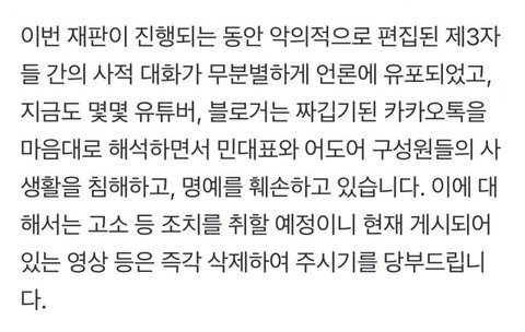 하이브도 고소중이래 단월드 허위사실적시 명예훼손으로 고소장 받은 애 인증올렸더라ㅋㅋ 양쪽 다 고소 가자ㅋㅋㅋ