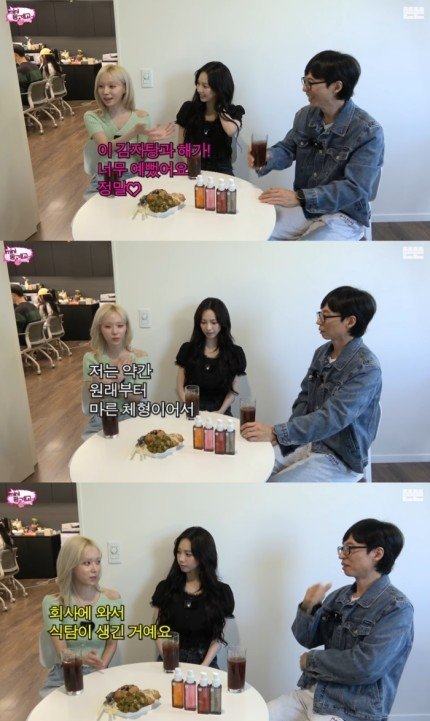 윈터는 “저는 원래부터 마른 체형이었다. 엄마가 밥 먹으라고 해도 ‘밥 맨날 먹는데, 왜 계속 나한테 밥 먹으라고 할까? 너무 질린다’라고 할 정도로 밥을 안 좋아했다”며 “엄마가 되게 걱정하실 정도로 식탐이 없었는데 회사에 와서 식탐이 생겼다”고 했다.
