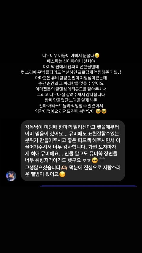 카리나 이어 지젤도 감독님께 디엠으로 감사전달 보냈네 진짜 아마겟돈 뮤비 잘만들었음 에스파들은 얼굴 예쁜데 마음씨도 예쁜다고?? 이러니까 좋아할수밖에.... 예쁘고 착하고 다가졌네