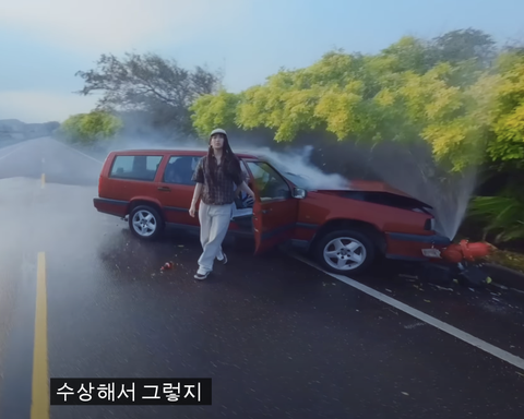 마음을 바꿨다며 '붉은' 차 안에서 내리는 혜인