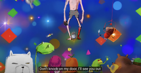 벌레?들이 붙어있고 멤버들 표정 별로 안 좋음