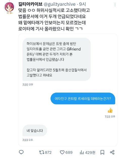 피어나 친구가 알려줫는데 팬들도 모여서 몇주동안 하이브에 신고하고 있다고 하더라