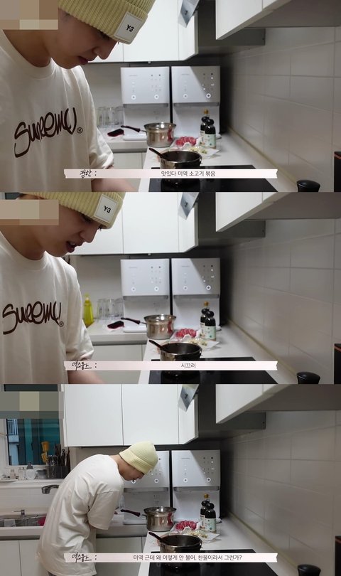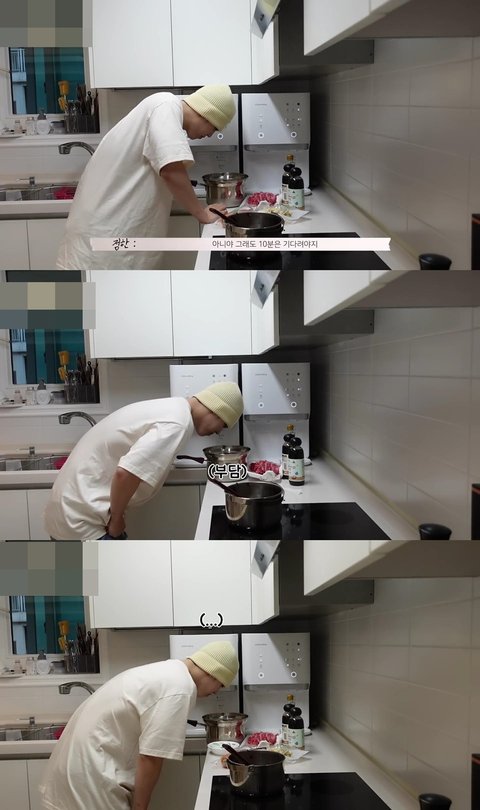 불안해진 마음에 또 말 없이 용가리 데우다 미역국 앞으로 향함