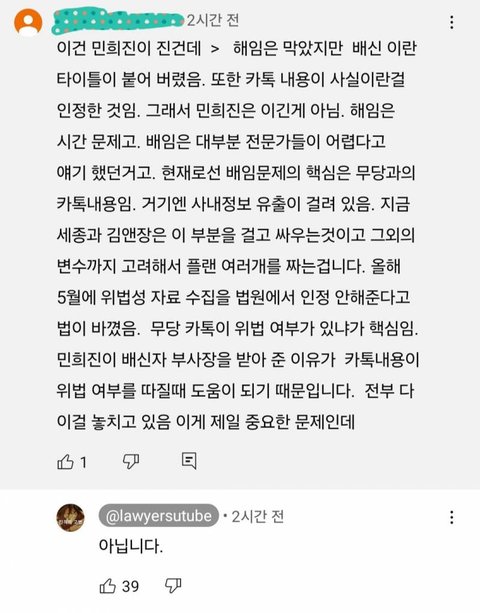 시혁뷘 반응에 김앤장 출신 변호사가 바로 반박 ㅋㅋㅋㅋㅋㅋㅋ답글이 김앤장 출신 변호사님