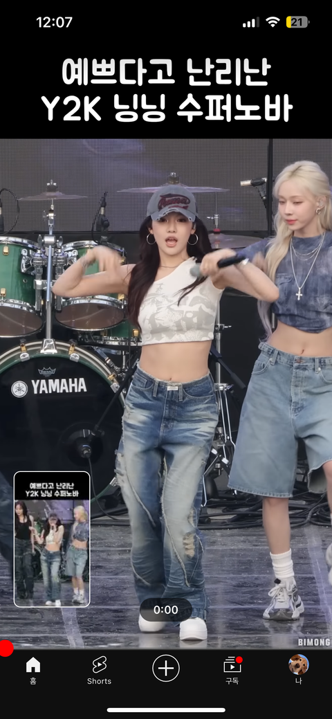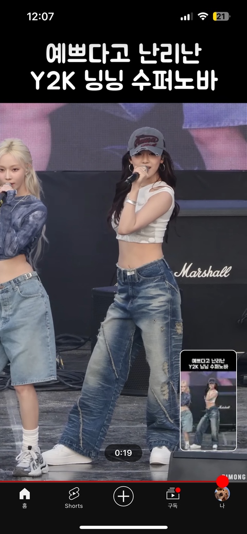 허리 선이 높아서 그렇지 크롭을 완전 크롭, 가슴밑정도로 입고 로우라이즈 입으니까 배에는 살이 별로 없어서 되게 날씬해보이고 예쁘더라 그리고 와이드팬츠, 딱붙는 부츠컷 청바지 진짜 잘어울림