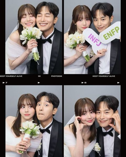 사진에서 한보름은 웨딩드레스를 입고 턱시도를 입은 남성과 얼굴을 맞대거나 볼하트를 하는 등 달달한 분위기를 자아냈다. 각자의 MBTI를 적은 팻말을 들고 있거나, 부케를 들고 같은 표정을 지으며 누가 봐도 신혼부부의 모습을 보였다.