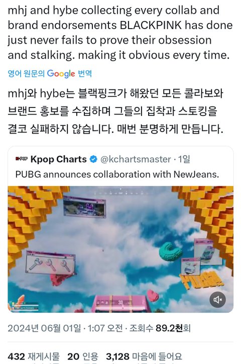 블핑팬덤이 원래 뉴진스 패고 방탄팬들 방어해줬는데 이제 같이 쳐 맞으니까 뉴진스는 양쪽에서 욕 먹는 게 됐지