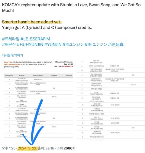 랭킹에서 말하는 음저협은 한국 komca인데 애초에 등록된 적이 없는데 어떻게 내려갈 수가 있어? 스마트는 미국 ascap에 등록돼있고 한국에 신청하든 미국에 신청하든 저작권으로 보호받고 수익도 받아