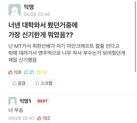 너넨 대학와서 봤던거중에 가장 신기하게 뭐였음??