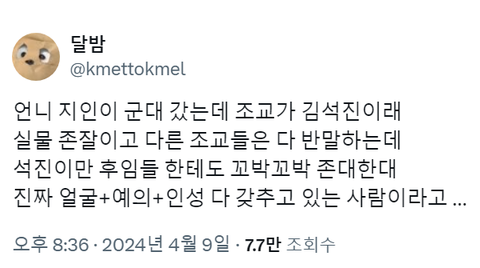 김석진 6월 13일 오프에서 프리허그 실환가