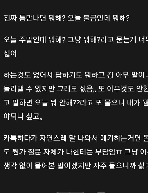 걍 불금이랑 주말에 방구석에 있는게 부끄러워서 물어보면 싫어하는거 같음
