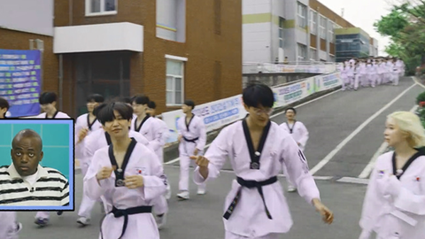 아침부터 전교생이 태권도복을 입고 달려나오는데