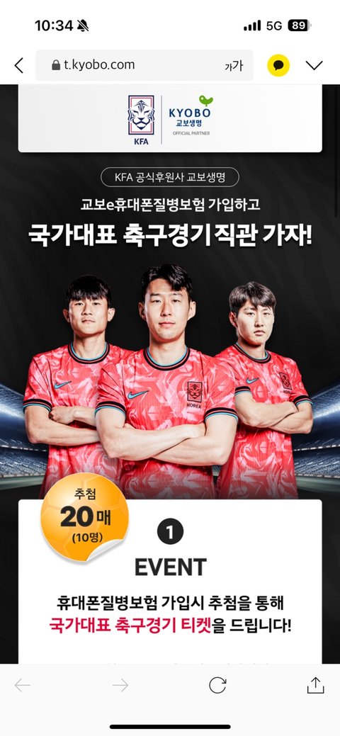 이벤트 페이지도 나쁘지 않음. 보험도 토스/뱅샐에서 주는것보다 혜택이 좋음당첨되면 10만원치 국대경기 티켓도줌(2층석)