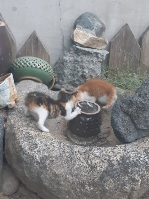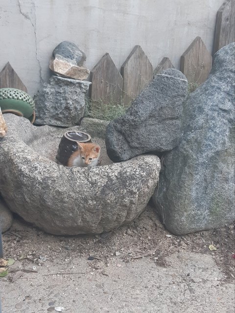 남편이 시골 마당있는 집으로 이사오면서 만들어준 화단인데 저 학독은 시골할머니께 장식품으로 산건데 아기고양이 놀이터가 되어 버렸다. 그래도 너무 귀여운걸 오똑해~~~