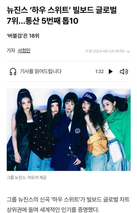 웅 뉴진스 유튭뮤직 1위 ㅎㅎ