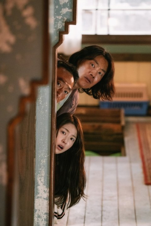다음은 겁먹은 ‘재필’과 ‘상구’에 ‘미나’(공승연)가 합세한 스틸로, 마치 일심동체가 된 듯 셋이 얼굴만 빼꼼히 내밀어 드림하우스에서 어떤 일이 벌어지고 있는지 궁금증을 자아낸다. 무슨 일인지 확인하려 상체를 쑥 내민 ‘상구’, ‘미나’와 달리 ‘재필’은 오직 눈만 내밀어 셋 중 제일 겁을 먹은 듯한 느낌을 전해 웃음을 유발한다. 해당 스틸은 이성민, 이희준, 공승연의 코믹 트리플 케미에 대한 기대감을 드높이기 충분하다.