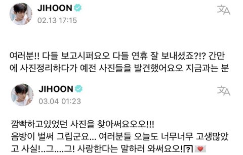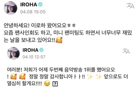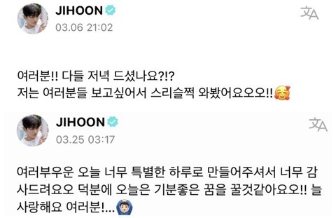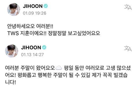 투어스 지훈이랑 아일릿 이로하랑 얘네 둘만 위버스 말투가 너무 비슷하넹.. 똑같이 제와피 연생하다가 20년도에 하이브 왔다구 본 것 같은데 연생때 사귄건가…안 사귄다면 할 말은 없지만 회사도 같고 안그래도 지금 안좋은 말 많이 나오는데 신인이면 조심해야되는거 아닌가..