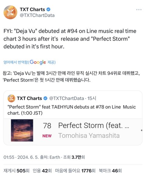 일본에서 반응이 좋대! 아이튠즈도 11개 나라에서 1등이고 일본 오리콘, qq 뮤직, 라인 등등 1등 많이 했넹